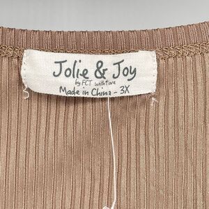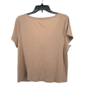 Jolie & Joy Women’s Tan Ruched Front Ribbed Cropped Short Sleeve Tee 3X