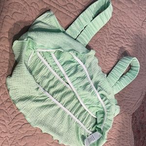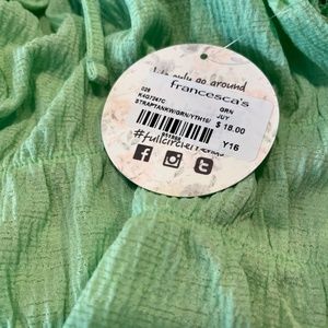 A green NWT Francesca’s top with a cut tie bow on the front.