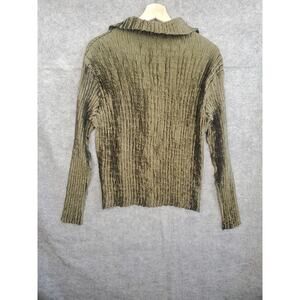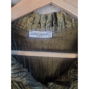 Jolie Mine Size Medium Olive Green Button Up Crinkle Blouse Made In France