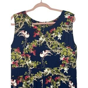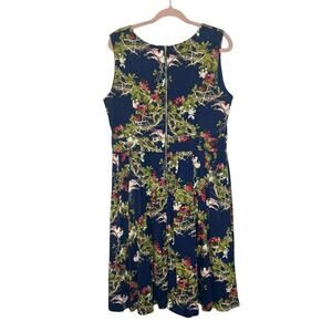 Jolie Moi Blue Bird Floral Sleeveless A-line Pleats Lined Midi Dress Size 18