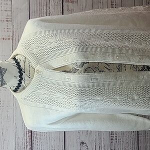 Made in the USA. Creamy white beautiful acrylic knit. Long sleeve button front. Like new condition.
