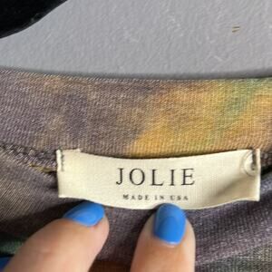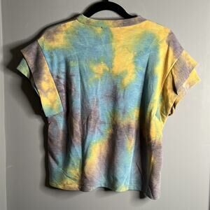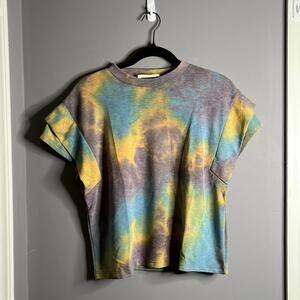 Cute and comfy crop top from Jolie. Tie Dye print with short sleeves. This would be so cute with jeans or Jean shorts.