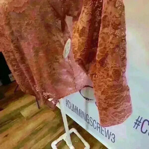 Jolie and joy women's 2x blush pink long sleeve lace bodysuit new with tags. rose pink blush in color. brand new with tags. full circle trends. Julie and Joy by f ct with love. super cute collar. all lace body soup. two button snaps. big cuffs on the sleeves super cute worn alone with leggings or jeans. paired off with shorts and heels is super sexy for date night. you can also just wear it with a bra