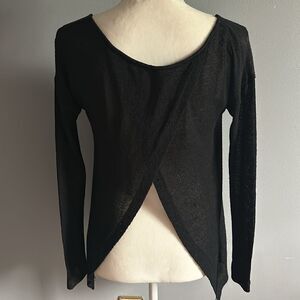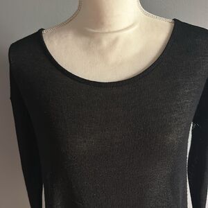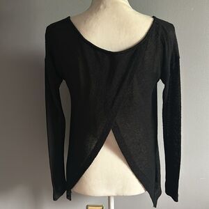 Beautiful lightweight sheer scoop neck sweater with open cross back