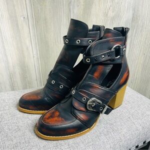 Elevate your style with these chic cutout design black and brown women's boots. Western Style Buckle Detail. 3” Heel, Back Zipper. Man made materials.