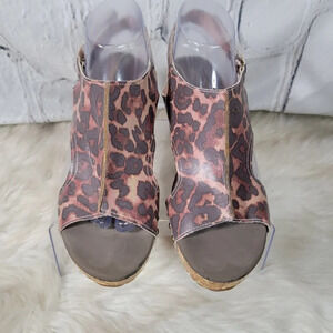 Jolimall Womens 9 Leopard Print Brown Wedge Summer Sandals Casual Comfy Padded
