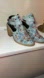 Jolimall Women’s Blue Embroidered Heeled Mules Size 7 – Western Boho Chunky Heel