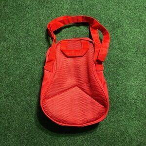 - The red, zip enclosure, shoulder bag features the restaurants mascot as the front body and a red mesh backing with a nylon, red handle and strap