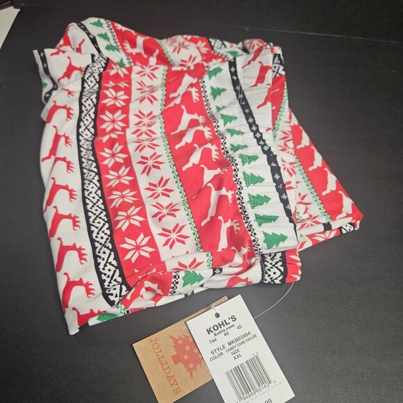Jollidays XXL Candy Cane Galor Leggings, 90% Polyester, 10% Spandex, white with red, black, green stripes and holiday patterns, 35" waist to hem