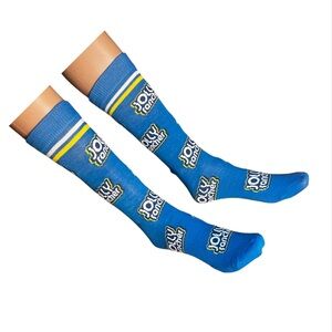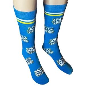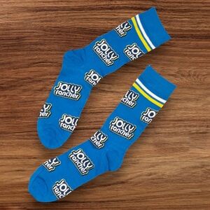 Step out in style with these vibrant blue jolly rancher novelty crew socks. Perfect for adding a pop of color to your outfit.