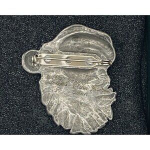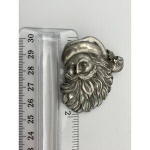 This Jolly Santa Brooch by Seagull Pewter is a charming accessory from 1992 Nova Scotia. Expertly crafted from pewter, it features a grey-toned jolly Santa Claus.