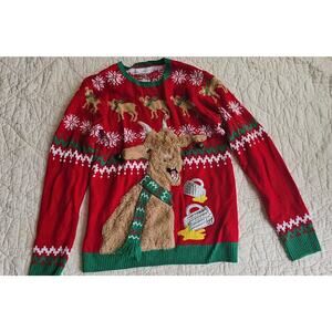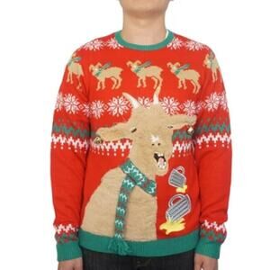 Jolly Sweater Holiday Goat Ugly Christmas Pullover Sweater Men Size L Multicolor