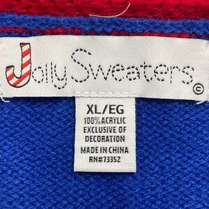 Jolly Sweaters Blue & Red Acrylic Christmas Cardigan XL Holiday Festive - New