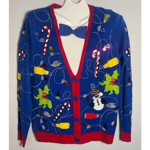 Jolly Sweaters Christmas Sweater Tie Holiday Party Beer Blue L Ugly Sweater