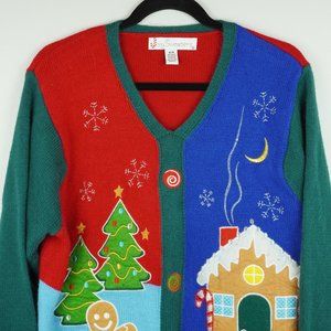 Jolly Sweaters Christmas Theme V-Neck Sweater Size Medium