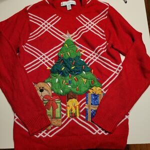 Jolly Sweaters Holiday Ugly Christmas Sweater with Christmas Tree, Bear & Gifts