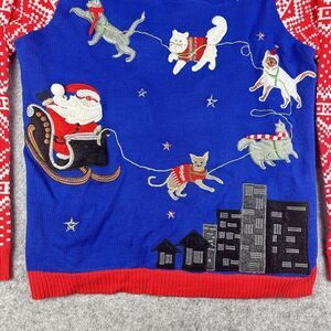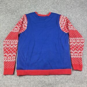 Jolly Sweaters Ugly Christmas Fair Isle Cats Adult XL Blue Red Stars Lights Up*.