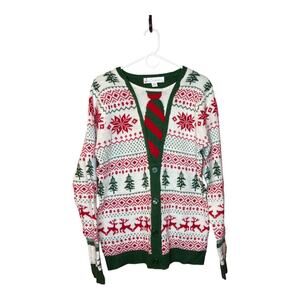 Jolly Sweaters Ugly Christmas Sweater Fair Isle Cardigan and Tie Men's Size M