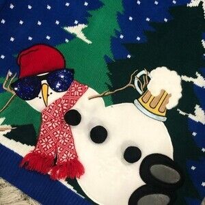 Jolly Sweaters Ugly Christmas Sweater Mens XL Holiday Snowman Beer Blue