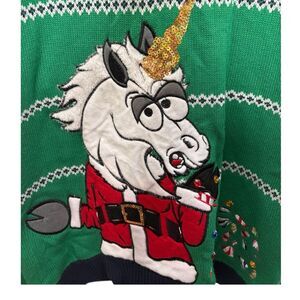 Jolly Sweaters Unicorn Barfing Candy Ugly Christmas Sweater Novelty Green Large Great Shape Smoke Free Dog Friendly home