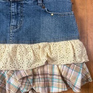 Jolt 90s jean tiered yellow plaid floral fabric shorts lined skort SIZE 16