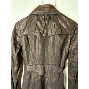 Jolt dark metallic copper brown trench style lined button up coat. Size medium; length 36”, sleeves 23”.. Ciat is in excellent condition; very little wear, no defects.