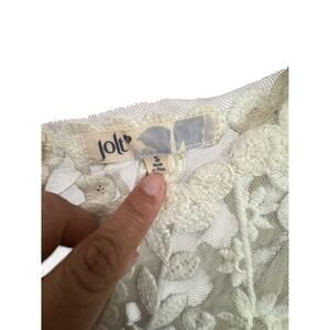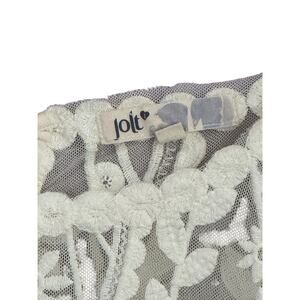 Elevate your wardrobe with this beautifully romantic Jolt blouse featuring a sheer embroidered lace yoke with floral detailing across the front and back. The soft, lightweight cream fabric flows gently for a relaxed boho silhouette, making it perfect for pairing with denim, skirts, or layering under jackets. The back button-down closure adds a charming vintage touch.