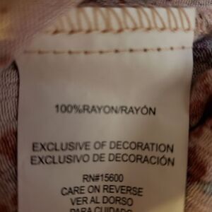 ~ Description: Mauve top with pink and blue floral pattern, stretchy smocked waist, button bodice, long sleeves, non-stretch crepe-y material, v-neck