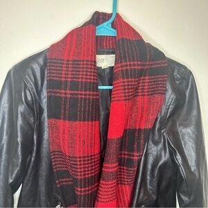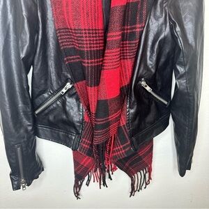 Jolt Fly Away Red & Black Plaid Faux Leather Jacket Size Small