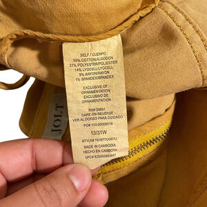This Jolt Jean Skirt is perfect for any occasion, whether it's a casual day out or a fancy party. The skirt is made of a lightweight and stretchy blend of polyester, spandex, rayon, lyocell, cotton, and cotton blend. It features a mid-rise waist and a straight zipper closure. The mustard color and Aztec-themed accents add a touch of bohemian flair to the overall design. The skirt is machine washable and can be worn in any season. It's perfect for travel, workwear, business, or even just a day at the beach. The skirt is available in a women's size 31" waist and is made in Cambodia. Get ready to turn heads with this stylish and versatile skirt!