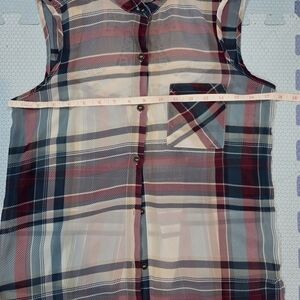 Jolt Juniors Sleeveless Plaid And Lace Lightweight Button-Up Tunic Size S
