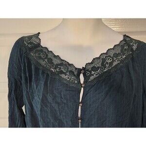 Jolt Lace Blouse Size X-large Button Up blue green Blouse XL