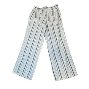 Jolt Linen Blend Blue White Stripe Wide Leg Women Pants Sz L Earthy Beach Boho