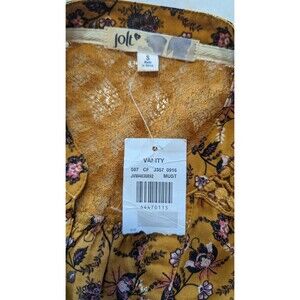 New With Tags Jolt Mustard Yellow Floral Long Sleeve Sheer Flowy Light Boho Blouse Size Small