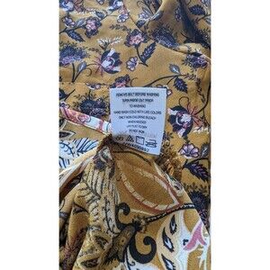 Jolt Mustard Yellow Floral Long Sleeve Sheer Flowy Light Boho Blouse Size Small