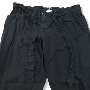 Jolt Pants Size 7 Linen Rayon Blend Casual Lounge Leg Roll Tab Drawstring Black