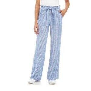 Jolt Paper Bag Linen Blend Blue White Striped Casual Pant’s Size Medium