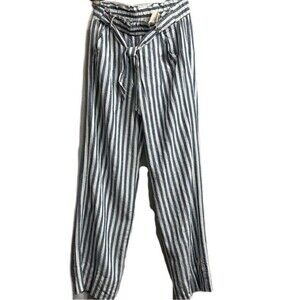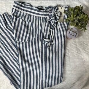 Jolt Paper Bag Linen Blend Blue & White Striped Casual Pants Size M featuring front & back pockets with front tie. Great pants for a casual day out.