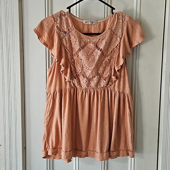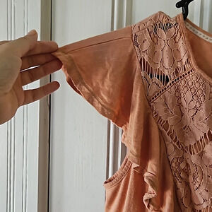 Jolt Peachy Boho Lace Ruffle Flutter Sleeve Top Large