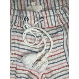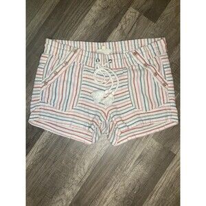 Jolt Small Orange Blue Striped Linen Shorts Beach Vacation Drawstring Boho