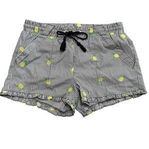 Jolt Stripe Pineapple Ruffle Shorts Black White Stripe Womens Large Drawstring.