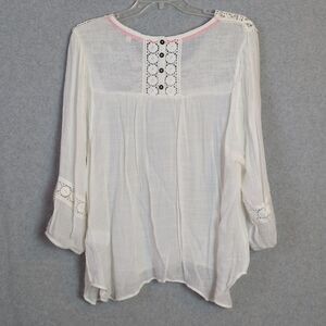 Jolt White Ivory Flowy Top Crochet Detail Women's L