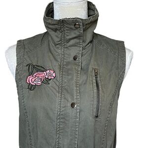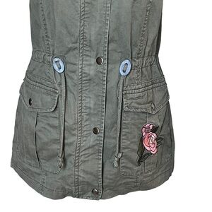 Jolt Women’s Green Military Utility Vest Jacket Size S Embroidered Roses Zip