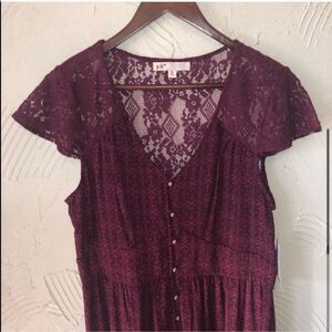 Button Down Front Cap Sleeves Lace Back Size XL Extra Large