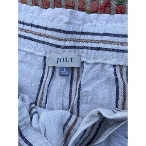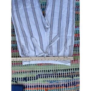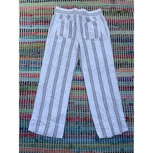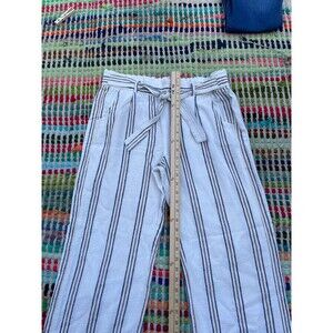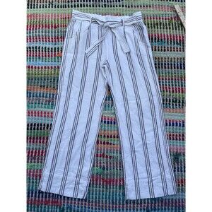Jolt Womens Size L Linen Blue Striped Rayon/ Linen Blend Paperbag Wide Leg Pants