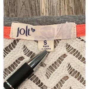 Jolt Womens Small Gray and White Chevron Lace Back Panel Short Sleeve Top
