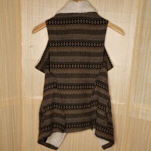 Jolt Southwestern wool blend blanket vest with faux sherpa collar. Gently used condition. Measurements are: 25” from shoulder to shortest part of hem (back).