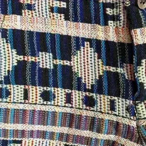 Has 4 pockets. 2 in front 2 in back. Functional zipper and buttons