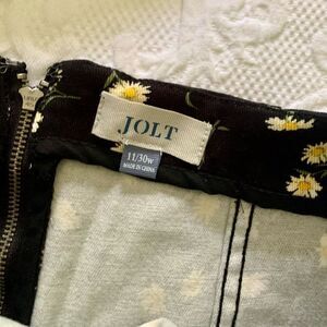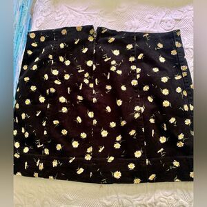 Jolt black corduroy mini skirt with daisies. Skirt zips up the back. Very cute.