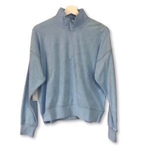 Jolyn Terry Cloth Callie Sky Blue Quarter Zip Sweatshirt.